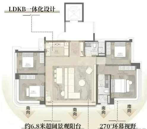 誉澜户型:建筑面积约196平方米,四室两厅三卫。同样拥有超102%的使用率和LDKB洄游方厅设计,极致的空间利用,让生活更加舒适自在。