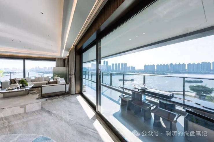 8.3米宽的阳台和次卧相连,形成跑道式阳台,带来一览无遗的视野,将园林、江景尽收眼底。