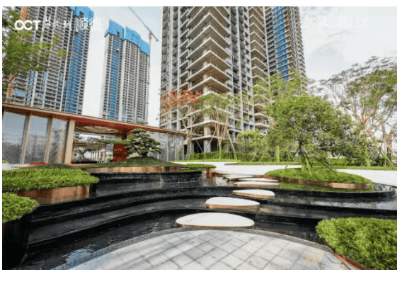 约9万平方米中央园林,是天鹅堡二期最震撼的“实景名片”。这里不是图纸上的效果图,而是业主每日可享的真实生活场域。园林由新加坡顶尖团队打造,融合岭南水系与现代美学,内含约300年树龄的婆罗花古树、数十株造型罗汉松、全龄活动场地、林荫步道、静心水庭等。户均享约58㎡园林面积,在寸土寸金的大良堪称奢侈。更难得的是,项目楼间距南北约120米、东西约320米,确保每户采光通风无遮挡,营造出低密、静谧的社区氛围。外部环境同样优越:东侧顺峰山公园(约600公顷)是天然氧吧,西侧欢乐海岸PLUS提供活力社交场,真正实现“出则繁华,入则宁静”的理想生活范式。