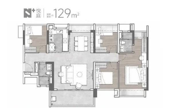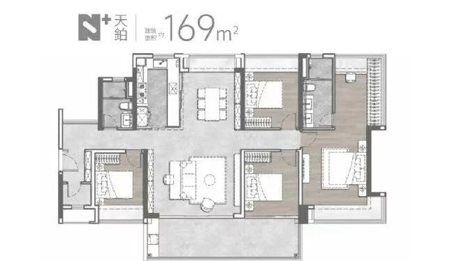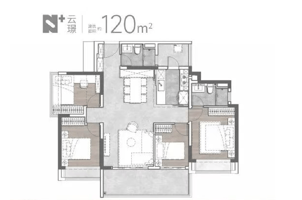 越秀·天悦云啟首推楼栋为1号和2号楼,户型面积从89平方米至169平方米不等,涵盖跃级三至四房。所有户型均采用LDKB互通设计,确保舒适的通风采光及家人间的交流互动空间。特别值得一提的是,项目采用了新规后板块内20%阳台建设比例,使用率接近100%,为业主提供了更多的实用空间。