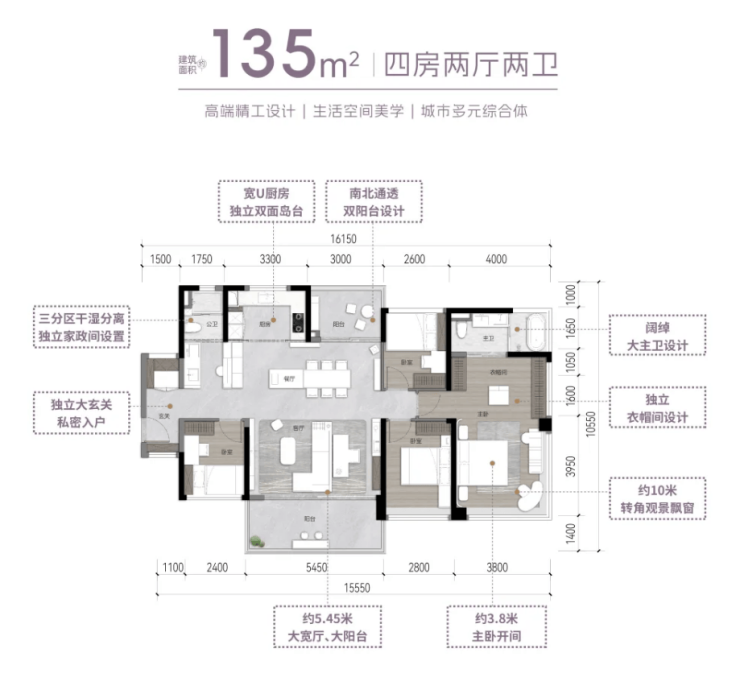【135㎡四房】—— 多孩/多代家庭终极解决方案