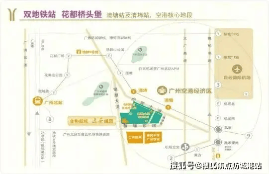 ✅地段:花都滨水新城核心,地铁9号线清塘站(直线距离1.2公里)与规划中的24号线交汇,30分钟直达白云新城;