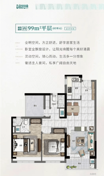位于广州市番禺区市桥板块的大华紫悦府,是大华集团在广州的重要项目之一。该项目占地面积65000㎡,总建筑面积达108000㎡,由690户住宅单位组成,并提供844个停车位。凭借3.5的容积率和35%的绿化率,大华紫悦府为业主打造了一个既现代又生态宜居的生活环境。