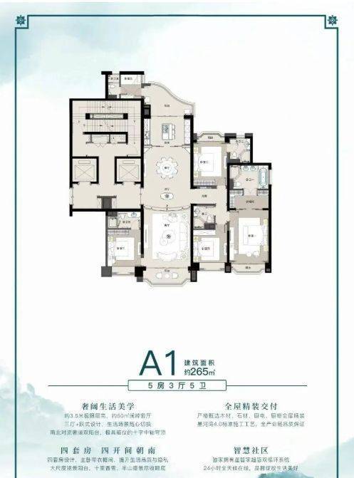 216–265㎡大平层:四开间朝南+270°观景阳台+双主套,对标豪宅尺度,收藏属性强。