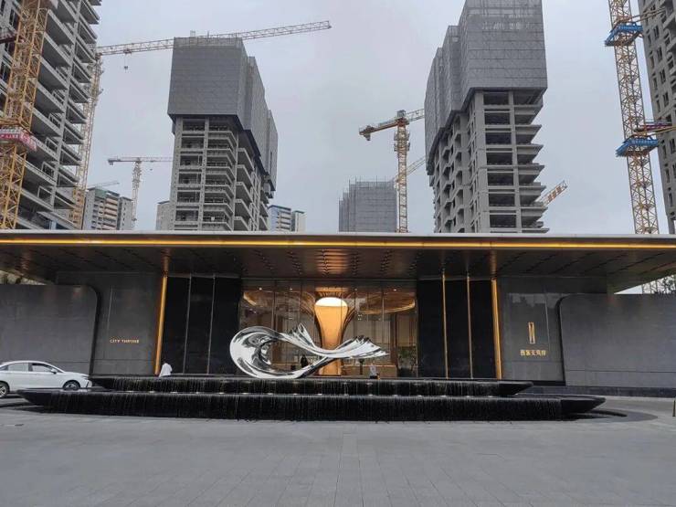 此外,项目主入口的设计也极具仪式感。8.18米高、44.6米长的主入口门楼,搭配50米弧形水景,气势恢宏又不失精致。造价200万的艺术照壁更是点睛之笔,彰显出项目的高端定位。归家即享超五星级酒店般的尊崇体验,让每一位业主在进入社区的那一刻,就能感受到身份的尊贵。
