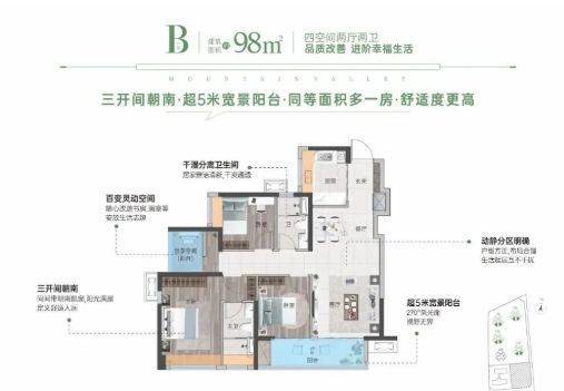 98㎡四房两卫:区域罕见的小面积四房,二胎家庭福音;