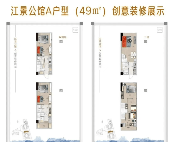 国科众安・江屿大观在户型设计上注重多样性和实用性,满足不同人群的需求。其中,江景公馆为建面约 38-50㎡的精装 LOFT 公馆,拥有约 4.5 米挑高层高,与江山叠院享受同等配套,视野开阔,空间可灵活改造,无论是作为城市新贵的居住场所,还是用于办公、投资,都十分合适。江山叠院则为建面约 160-190㎡的大户型,仅为 156 位峯层人物典藏,设计有独立入户大院空间、挑高地下室以及顶层 270° 景观露台,融合院区纯粹与叠院隐逸价值,实现 “一层一世界” 的居住体验,同样适用于办公、投资和居住,为追求高品质生活的人群提供了优质选择。