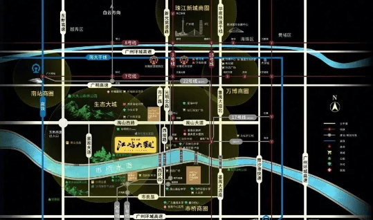 国科众安・江屿大观坐落于广州南市桥芯禺山大道南侧,占据大湾区 “桥头堡” 位置,同时也是广州南部 CBD 的战略要地。从区域联动来看,项目北邻万博 CBD,西侧是广州南站商务圈,南邻南沙经济发展区,东侧可接驳东莞、深圳,地处广州发展向南的重要节点,番禺作为湾区中轴和经济圈可持续发展战略要位,为项目发展提供了良好背景。交通方面更是优势显著,实现 “十轨汇聚”,“3 条地铁 + 8 条城市交通枢纽 + 1 个高铁站” 构建起湾区 1 小时生活圈。其中,项目紧邻 3 号、18 号、22 号地铁线,能实现全域无缝衔接,让住户和办公人群畅快通达全城,无论是日常通勤还是跨城出行都极为便捷。