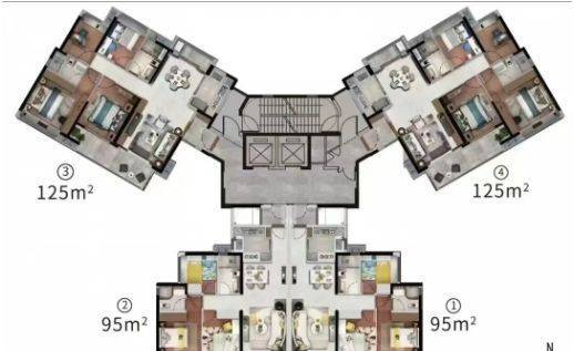 125㎡四房两卫:LDK一体化,主卧套房,空间尺度更优,适合二胎或三代同住。