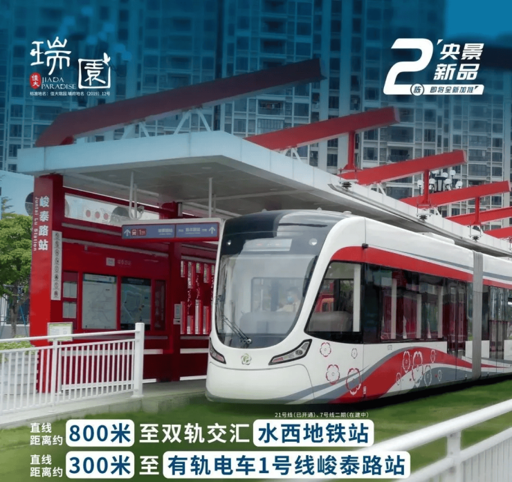 A:项目直线距离地铁7号线二期/21号线水西站约800米,步行10分钟左右可达;直线300米内有有轨电车1号线峻泰路站,出行便捷,可快速通达全城。