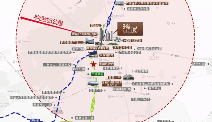 佳大瑞园坐落于黄埔区科学城区府核心板块,与网红大盘科城山庄仅一路之隔,占据板块内优质区位资源。区府板块作为科学城的行政、商业与文化中心,各项配套成熟完善,是科学城最具居住价值的板块之一。