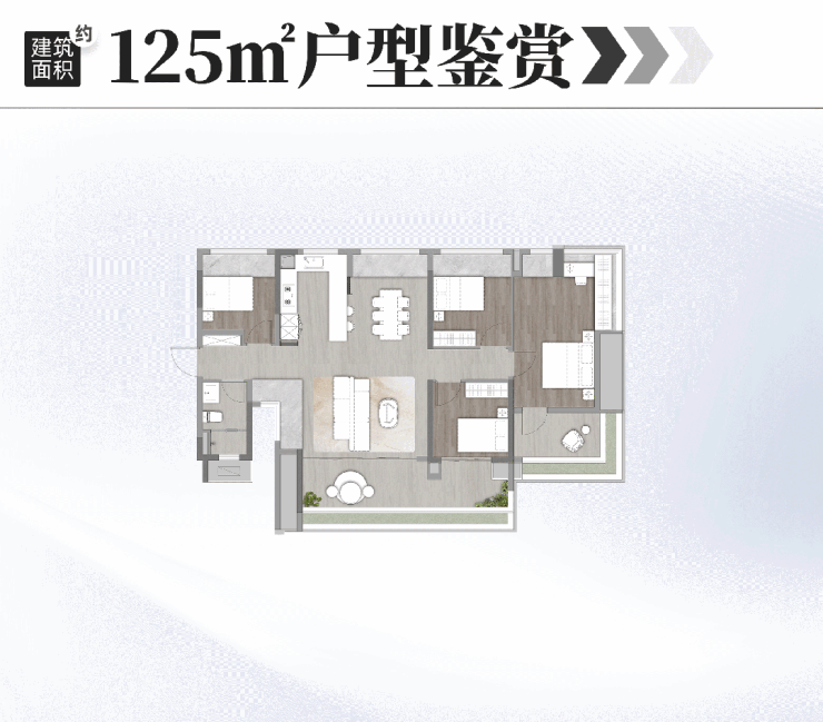 建面约125平方米:南北对流,南向面宽接近15米,居住体验媲美市面上140平方米的大平层。