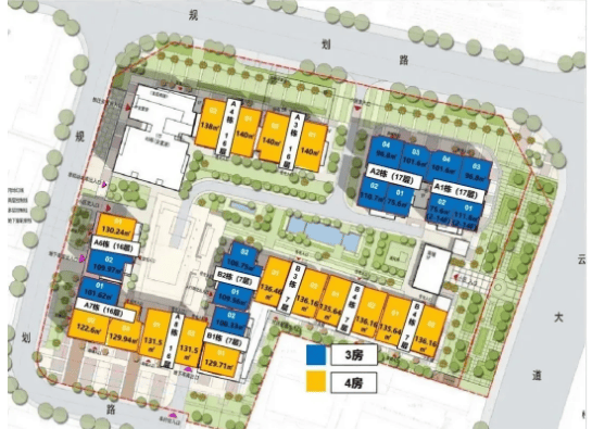 项目占地面积为14176㎡,建筑面积达56662㎡,整体规划为13栋建筑,其中包含8栋15-17层的小高层与5栋6-7层的低层住宅,建筑类型涵盖小高层、高层及塔板结合,既保证了社区的居住舒适度,又丰富了建筑层次。项目总户数为365户,容积率为4.2,绿化率达30%,在白云新城核心区实属难得的低密社区,为业主提供了宽松的居住环境。