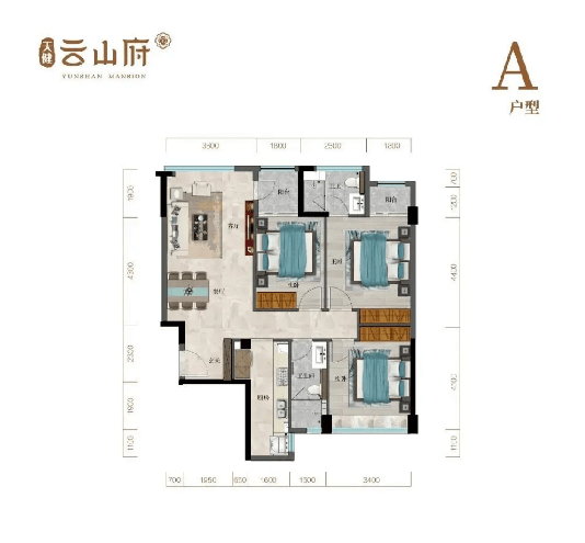 140㎡大四居户型,是项目的高端改善户型。该户型格局方正,空间开阔,南北双阳台设计,一面连接客厅,用于休闲观景,一面连接厨房,用于日常晾晒,功能分区明确;主卧套房配备超大阳光房,可打造为休闲区、健身区或花房,满足业主的个性化需求,同时可欣赏白云山绝美景观;四个卧室空间宽敞,采光充足,私密性强;卫生间干湿分离,配备多个洗漱台,满足家庭多人同时使用的需求。整体户型设计高端大气,空间利用率高,为业主提供高品质的居住体验。