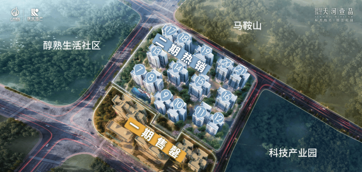 社区内设有全龄式社区乐园,构建了三环五园沉浸式园林,配有双泳池设计,满足不同人群的需求。紧邻项目的马鞍山未来规划为天河智谷人才公园,面积超过83万平方米,将成为区域内重要的休闲娱乐场所。