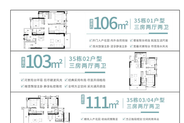 在售户型品鉴:105-138㎡新规三至四房,实用率破百成核心卖点