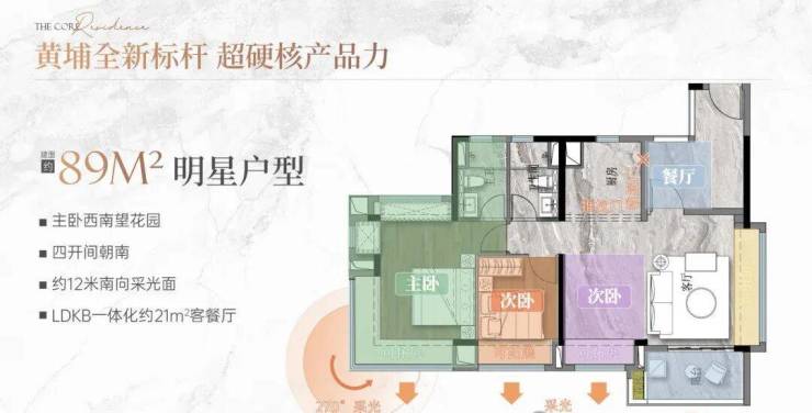 小区采用围合式布局,6栋47层高塔楼围绕中心园林排布,2号楼作为“楼王”是两梯四户设计,其余多为三梯六户。主力户型集中在81㎡到116㎡之间,适合刚需和刚改家庭。我特别留意了89㎡的三房,南北通透,主卧带飘窗,厨房U型操作台留足转身空间,阳台还能连通次卧做成双阳台——这种实用细节,在同面积段里不多见。159㎡的大户型则主打南向景观,高区视野能望到广州塔。
