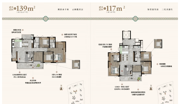 特别值得一提的是全新央景楼尊推出的117平方米和139平方米的新规四房。这两套房源位于园林中央楼王位置,2梯3户的尊贵配置,私密性极佳。117平方米的户型被誉为最受欢迎的“飞机户型”,空间布局合理,动静分区明确。而139平方米的户型,得房率更是高达110%,阳台比例提升至20%,将室外的自然景观最大限度地引入室内,让人仿佛置身于花园之中。这种对空间的极致挖掘,让每一平方米都物尽其用,真正实现了“小面积大空间”的居住梦想。