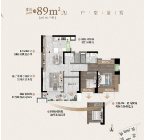 在售房源方面,项目提供了多种户型选择,以满足不同家庭的需求。89平方米的A户型,是专为刚需上车族打造的舒适三房两卫。正南向的布局,保证了充足的采光和通风,均价1.58万元/平方米,性价比极高。89平方米的C户型,则主打南北对流,同样配备三房两卫,均价1.6万元/平方米,适合追求通风效果的家庭。106平方米的户型,拥有对流设计和6.2米的大阳台,四房设计,均价1.65万元/平方米,空间利用率极高。122平方米的户型,采用LDKB设计,四开间朝南,四房两卫,均价1.7万元/平方米,舒适度更上一层楼。