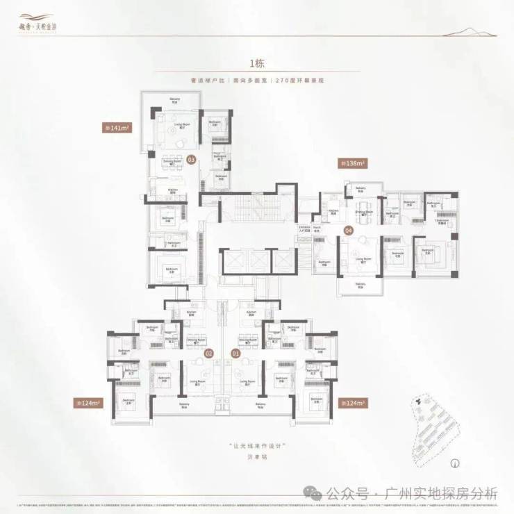小高层95㎡/125㎡三四房、超高层96㎡三房、125㎡/141㎡四房、底叠150-200㎡三四房。
