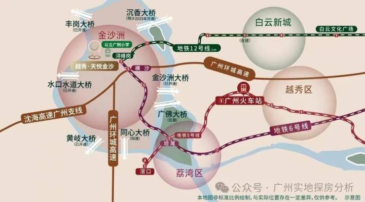 项目位于广州市白云区金沙洲板块,紧邻荔湾区,是越秀地产打造的天字系高端项目。