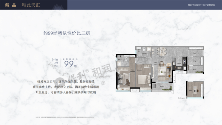 项目主推99-188㎡三至五房户型,涵盖刚需、改善、终极改善全需求: