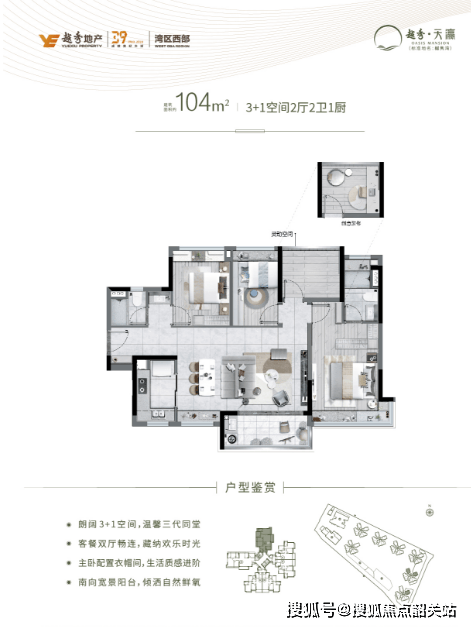 景观视野:80%户型直面花地河,楼间距最宽达60米,确保私密性与采光。