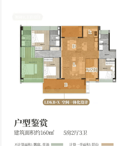 户型设计:90 - 160㎡三至五房,满足多元居住需求
