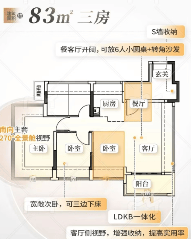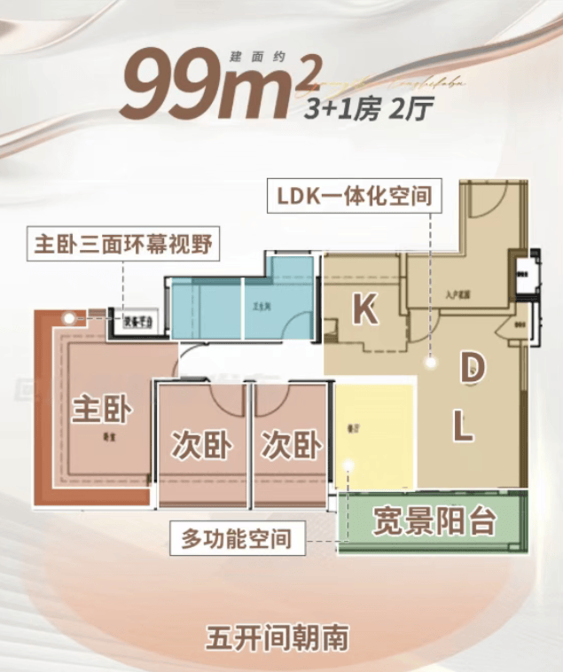 嘉禾望岗项目推出了多种户型供购房者选择,面积段涵盖83至126平方米,均为全南向设计,旨在最大化利用自然光线,提升居住体验。特别是126平方米的五房两卫户型,采用了5.5开间朝南的设计,南北对流,双面宽大阳台,使得室内空间更加开阔明亮。