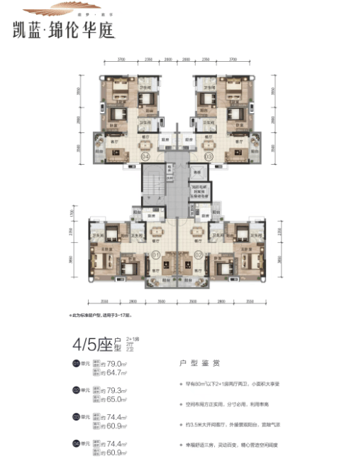 75-80㎡大三房:适合小家庭或首次置业者,总价10X-12X万。