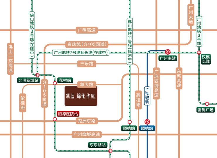位于佛山市顺德区伦教,临近广州地铁3号线“顺德人民医院”站。