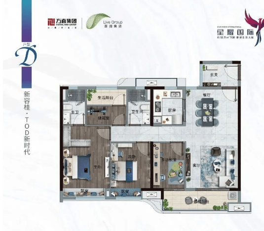 户型设计是方直星耀国际的另一大亮点。在售的建面约一百零二至一百二十七平方米的纯南向三四房,是我们根据本地家庭结构和生活习惯量身定制的杰作。所有户型均采用方正格局,动静分区明确,干湿分离合理。南北通透的设计,让阳光和清风成为室内的常客。阔景阳台更是点睛之笔,不仅拓展了居住空间,更提供了俯瞰园景的绝佳视角。精装修标准严苛,选材考究,工艺精湛,每一个细节都体现了对品质的极致追求。无论是主卧的私密空间,还是儿童房的成长环境,亦或是厨房餐厅的互动氛围,都经过反复推敲,力求完美。