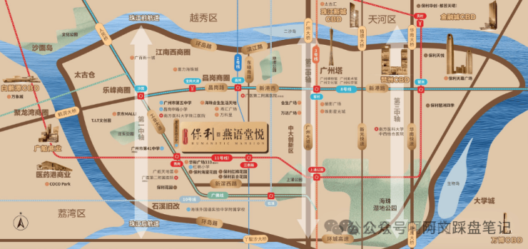 项目坐落于工业大道中,背靠珠江后航道,傲立于海珠新活力文商旅融合圈与广州市“首个”后航道服务型制造创新带交汇的核心地带,海珠后航道将成为海珠未来唯一连片开发的豪宅板块。环拥整个海珠乃至广州最顶尖的产业、商业、文旅资源,最为宜居的纯粹居住区,媲美“法国左岸”,凝聚海珠特有的文化发展脉络与基因,既能共享中央活力区和广佛高新技术园区双向红利,又能尽收老城醇熟烟火。