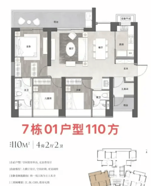 户型设计:主力户型为建面约 76-140㎡三至四房,实用率约 100%,空间利用高效,大横厅、大阳台设计提升居住舒适度,满足改善型家庭需求;