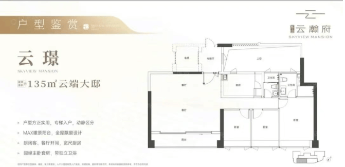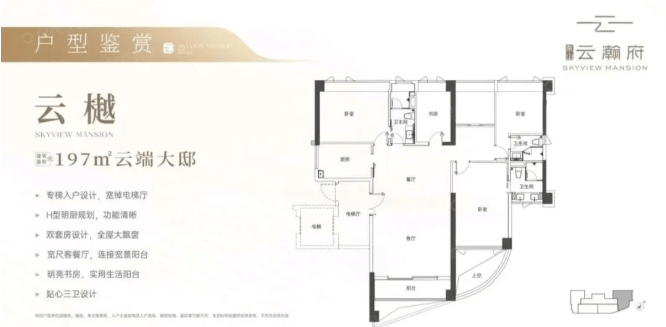 197㎡南向5房:四面采光,东单边户,三套房双阳台舒适大平层。