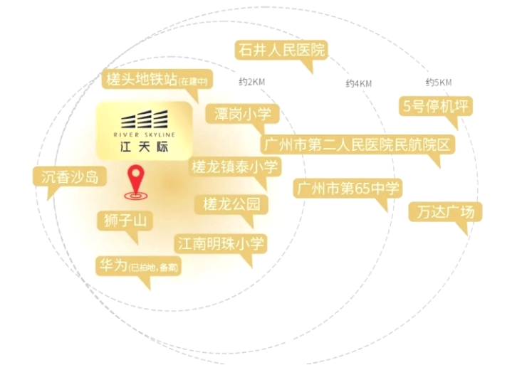 答:五矿招商江天际自带18班幼儿园,三期地块将引入一所54班九年一贯制学校。周边3公里范围内还有白云广雅实验学校、第65中学、槎龙镇泰小学等省一级名校,教育资源十分丰富。