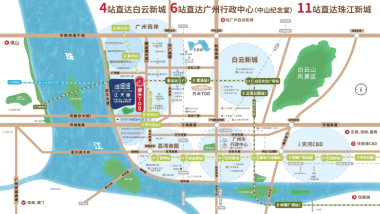 更重要的是,地铁的存在拉近了五矿招商江天际与城市核心的距离,让居住者能够更好地融入城市生活。通过地铁,业主可以快速到达白云新城、越秀公园、珠江新城等重要节点,参与各种文化活动、商务交流和社会交往。地铁不仅是一种交通工具,更是一种生活方式的延伸,让居住者能够更便捷地享受城市的资源和机会。