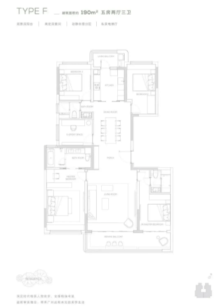 3. 190㎡五房三卫:270°环幕阳台,观景视野拉满