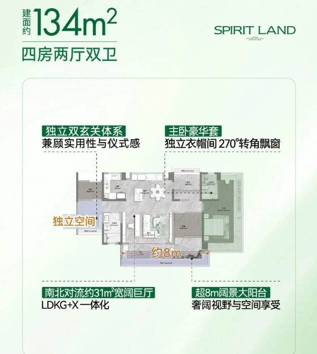 该项目提供多种户型选择,包括89㎡、100㎡、120㎡和134㎡的全南向户型。这些户型设计实用,使用率高达110%-115%,空间利用率极高。特别是89㎡三房带4.8米大客厅和270°全景飘窗,以及100㎡四房带7.2米大阳台的设计,为住户提供了舒适的居住体验。