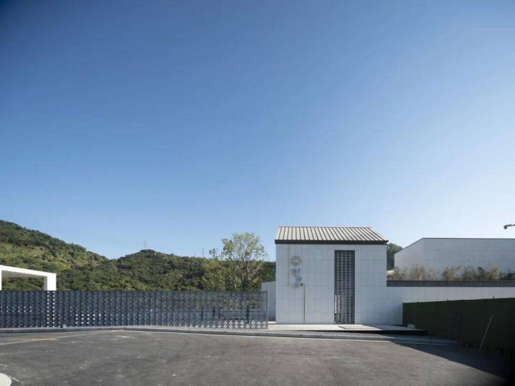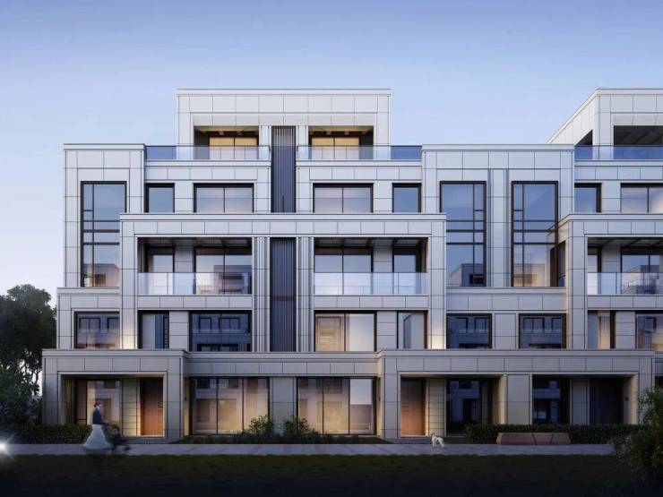 在建筑风格上,项目采用了新中式风格,将传统中式建筑的精髓与现代建筑技术完美结合。外立面采用米黄色石材与深色铝板搭配,线条简洁流畅,色彩典雅大方,既保留了中式建筑的庄重与厚重,又融入了现代建筑的简约与时尚。屋顶采用坡屋顶设计,屋檐微微翘起,勾勒出优美的天际线,极具辨识度。