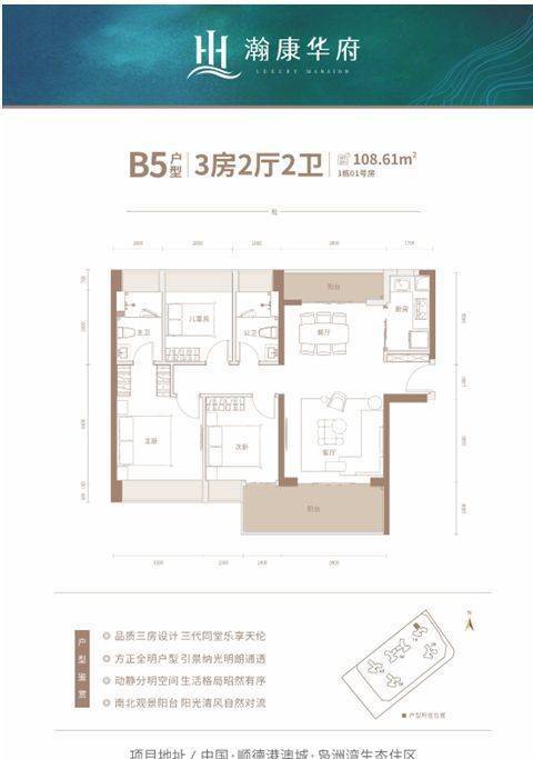 瀚康华府坐落于中国・顺德港澳城・凫洲湾生态住区,凭借众多显著优势,成为大湾区极具吸引力的置业选择。项目总占地面积约 3 万㎡,总建筑面积约 7.4 万㎡,由 5 栋建筑组成,共 700 户,两梯四户设计,主力户型为 84 - 106㎡三房及 121㎡四房,容积率仅 2.45,在片区内处于最低水平,绿化率达 30%,以毛坯交付。