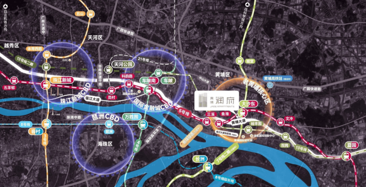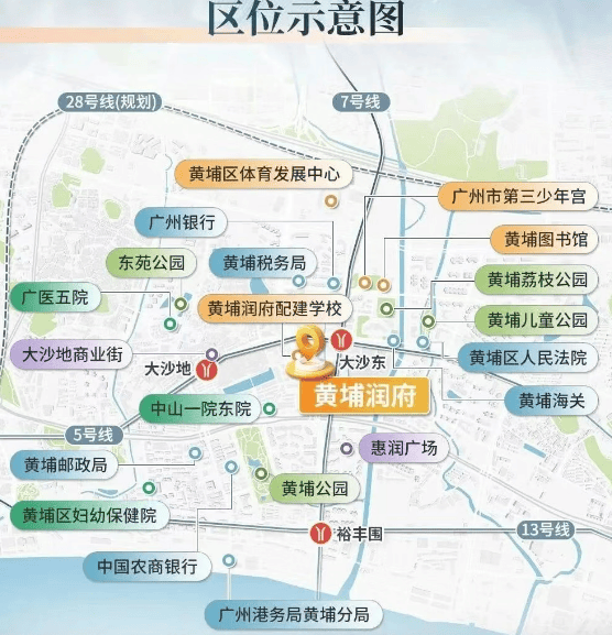 黄埔润府距离地铁5号线和7号线交汇的大沙东站仅约300-400米,步行即可到达。通过这两条地铁线,可以直达金融城、珠江新城以及科学城等多个核心商务区。此外,项目还临近黄埔大道和鱼珠隧道(在建),便捷通往珠江新城、金融城、鱼珠港及海珠琶洲各CBD。周边还有规划中的黄埔高铁站,进一步提升了项目的交通枢纽地位。
