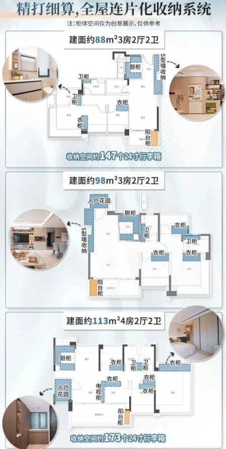 项目首期推出两种住宅楼,分别是47层高的超高层和31层高的高层。户型涵盖88平方米、98平方米和113平方米三种面积段,全部为南向户型,确保每户都能获得充足的阳光照射。每个户型都设计了大量收纳空间,提高了居住的实用性。