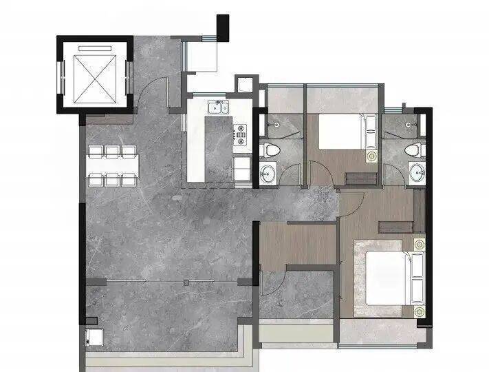 U型厨房的设计,贴合中式烹饪习惯,操作空间宽敞,洗菜、切菜、炒菜动线合理,能有效提升做饭的效率,对于喜欢做饭的家庭来说,十分实用。四个房间的布局合理,每个房间都有充足的采光和空间,既能满足三口之家的居住需求,也能兼顾老人同住,或者打造一个书房、儿童游乐区,实用性拉满。