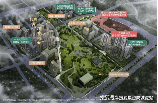 设计亮点:全玻璃幕墙外立面,270°环景视野,与约25万㎡中央公园无缝对接。