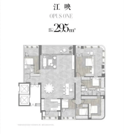 295㎡五房:两梯两户板式结构,五房三主套,仅剩4席,江景与私密性俱佳;