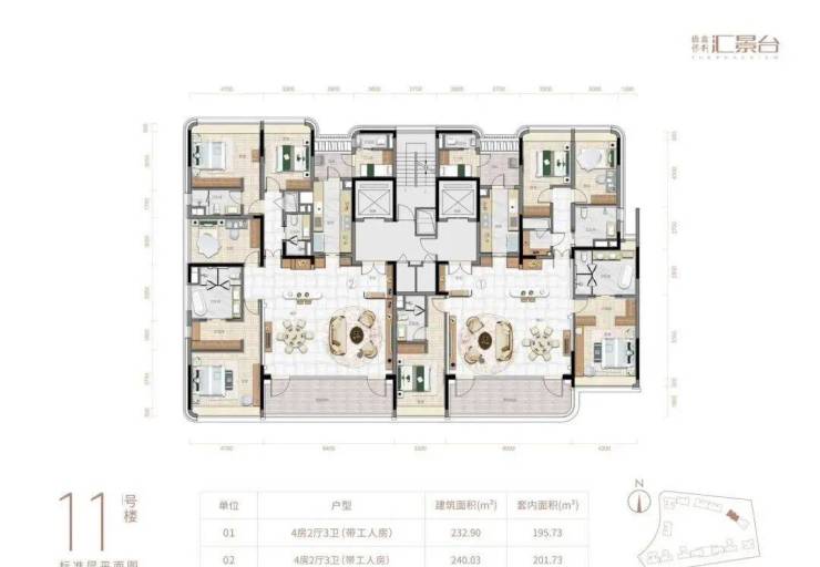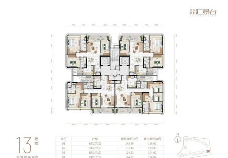 户型:123-352㎡三至五房,实用率82%-84%,每间房都是景观包厢