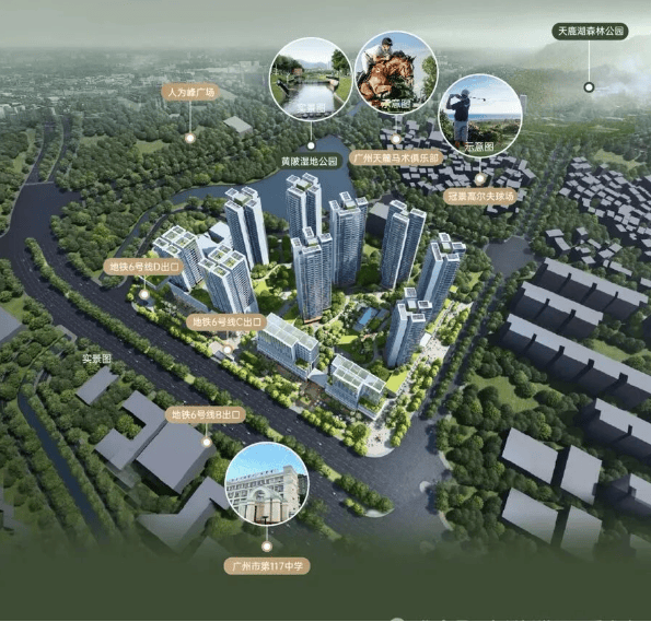 放眼望去,项目周边5公里范围内,分布着五大生态公园,总面积之大令人惊叹。其中包括约600公顷的火炉山森林公园,这是广州市民熟知的登山休闲胜地,植被茂密,空气清新;还有被誉为“广州东肺”的帽峰山及天鹿湖森林公园,总面积约880公顷,是巨大的天然负离子发生器。此外,梅花岭公园、尖峰岭公园以及广州科学城体育公园等绿意盎然的节点,共同编织了一张严密的生态防护网。这些公园不仅是城市的绿肺,更是业主私家的后花园。周末闲暇时光,您可以带着家人前往火炉山徒步,感受大自然的呼吸;或是清晨在科学城体育公园慢跑,开启活力满满的一天。