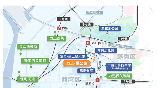 力迅樾公馆坐落于荔湾老西关核心区域,具体位于康王北路,地处陈家祠板块,地理位置得天独厚,距离越秀区仅1公里,无缝衔接老城区核心资源,尽享西关千年烟火气与人文底蕴。