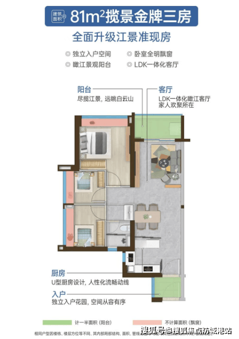 五矿・招商・江天际户型设计以 “江景最大化” 与 “空间实用化” 为核心,主打 78-140㎡三房至四房,使用率超 90%,部分户型享 270° 瞰江视野,充分满足不同家庭需求。78㎡三房两厅一卫,赠入户花园,超 94% 实用率,卧室全明飘窗,最高可三卧瞰江,为市面罕见江景小三房;88㎡三房两厅两卫,超 92% 实用率,宽尺主套(预留衣帽间),南向望江,部分户型享 270° 瞰江;110㎡四房两厅两卫,近 99% 实用率,南北双阳台对流,四开间朝南,三卧室南向瞰江,江景尽收眼底;140㎡四房两厅三卫,方正宽奢布局,巨幕观景阳台,双套间设计,大面宽采光,居住舒适度拉满。此外,A1 栋 81-116㎡户型,81㎡起步即可望江,LDK 客厅一体化设计,江景无界融入生活,所有户型均标配独立入户空间与 U 型厨房,空间利用率高。